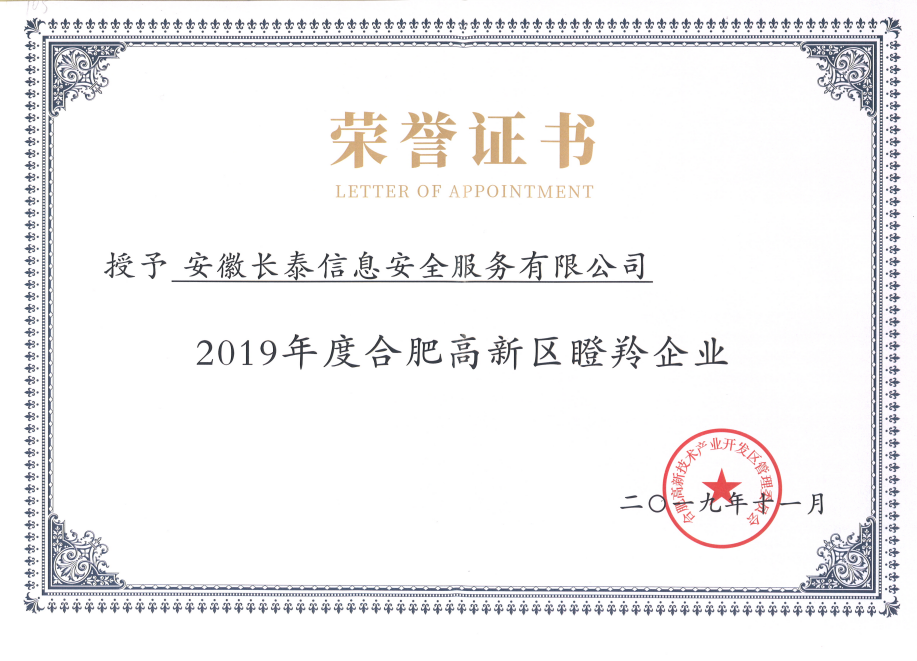 2019年,11月20日,合肥高新区2019年高成长企业榜单正式发布,高新区共认定了502家高成长企业,其中雏鹰企业275家、瞪羚培育企业72家、瞪羚企业149家、潜在独角兽企业3家、独角兽企业1家、平台型龙头企业2家。作为其中的高科技企业——安徽星空官方版网站登录入口-星空online(中国)成功入选瞪羚企业榜单。